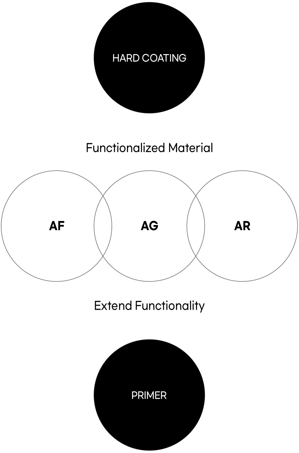 It is easy to coat on various substrates such as PC, PMMA, PET, Glass and organic/inorganic material.