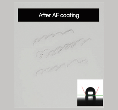 STAF can be applied on the surface of substrates such as glass, plastic, and metal surfaces to improve surface slip, anti-fingerprint and scratch resistance because it is a surface coating with a fluorinated polymer with 20-1000 nanometers thickness. It has excellent water and oil repellency as well as anti-fouling properties with high hardness as a UV curing system And also the STAF coated substrates can be protectively display and are easy to clean.